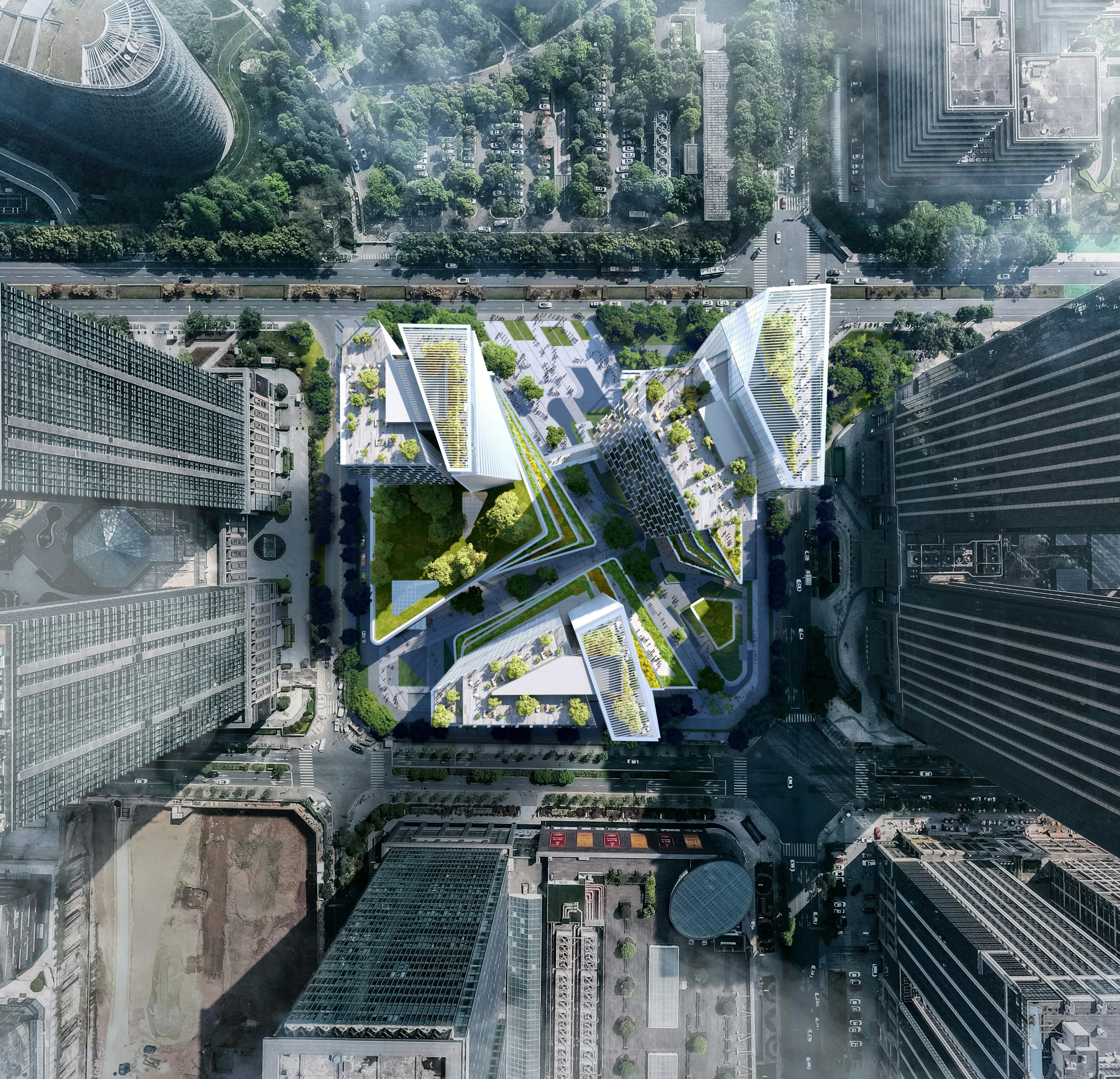 Le projet s'inspire des peintures Shan Shui : la diversité volumétrique des montagnes qui longe des vallées ombragées au fond des quelles coule une rivière.