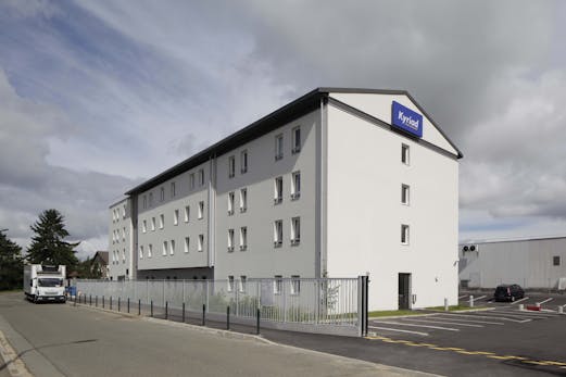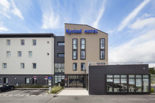 La construction de l'hôtel s'articule sous la forme d'un assemblage de volumes reliés entre eux, inscrit dans une enveloppe de R+3. L'amorce du bâtiment est marquée par un volume recouvert de vêture en bois claire créant un repère visible depuis l'entrée principale vers l'hôtel. Il repose sur un socle sombre constitué par la salle des petits déjeuners. L'articulation entre cet ensemble et le corps du bâtiment recevant les chambres est assurée par le hall et les paliers d'étages largement vitrés.