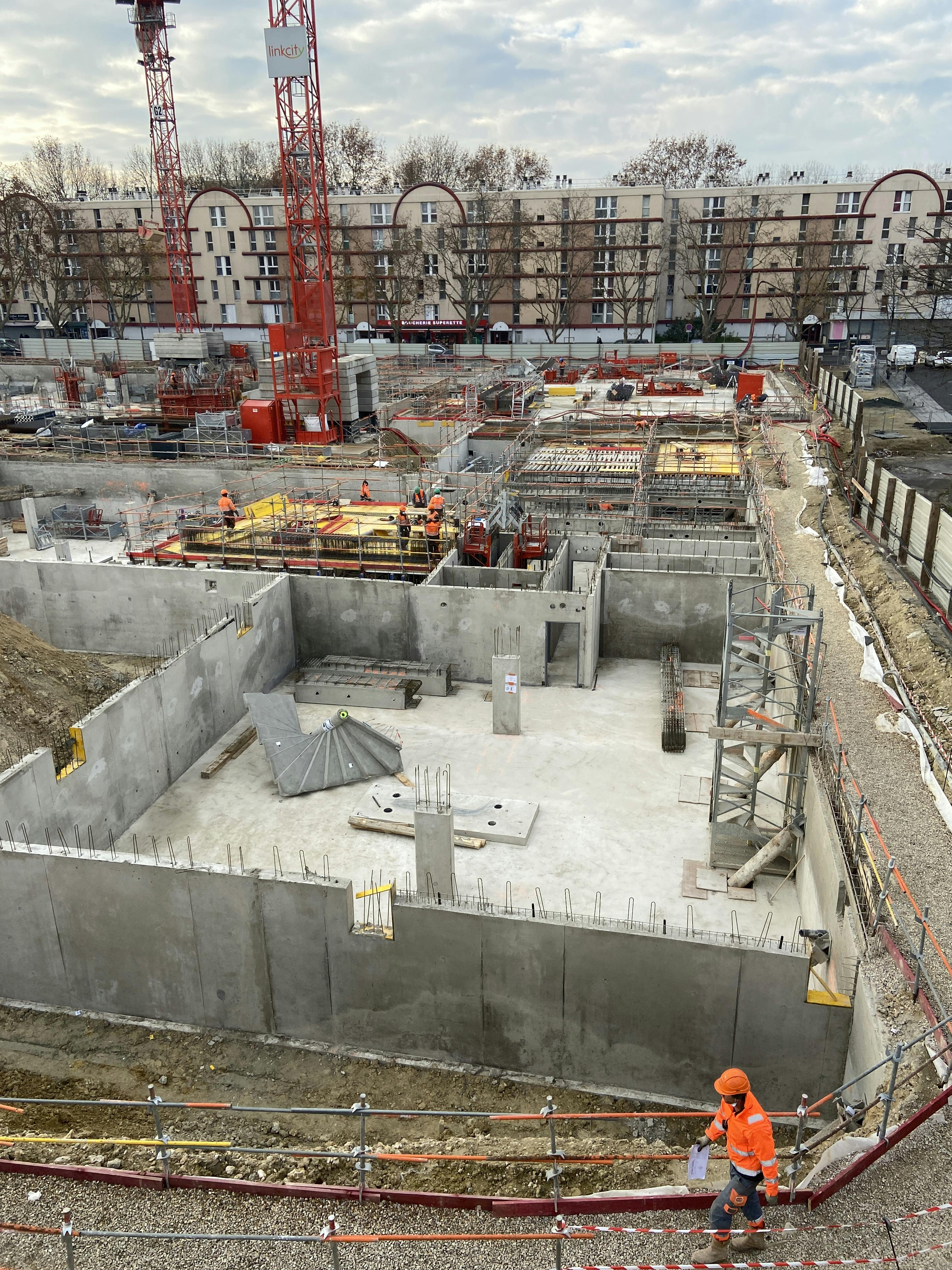 L’ensemble se présente sous la forme de trois bâtiments construits sur un parking d’un seul niveau de sous-sol. Les rez-de-chaussée sont en structure béton. Les étages supérieurs ont une ossature à structure bois.